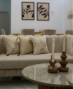 Découvrez notre collection de coussins Clas’Sy, élégamment brodés de fil métallique rose et ornés de pompons, alliant confort et esthétique pour rehausser votre décoration avec charme et modernité.